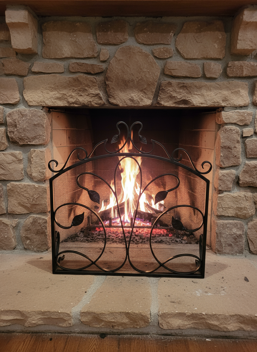 Elevate your fireplace with this striking 26" firescreen, featuring a decorative leaf design that brings natural elegance to any hearth. Crafted from durable steel, this substantial piece combines practical fire safety with artistic appeal, creating a focal point that complements both traditional and contemporary interiors. The detailed leaf motif adds sophisticated charm while the generous 26" x 26" dimensions provide excellent coverage. Perfect for protecting your home whilst showcasing timeless craftsmanship and style.