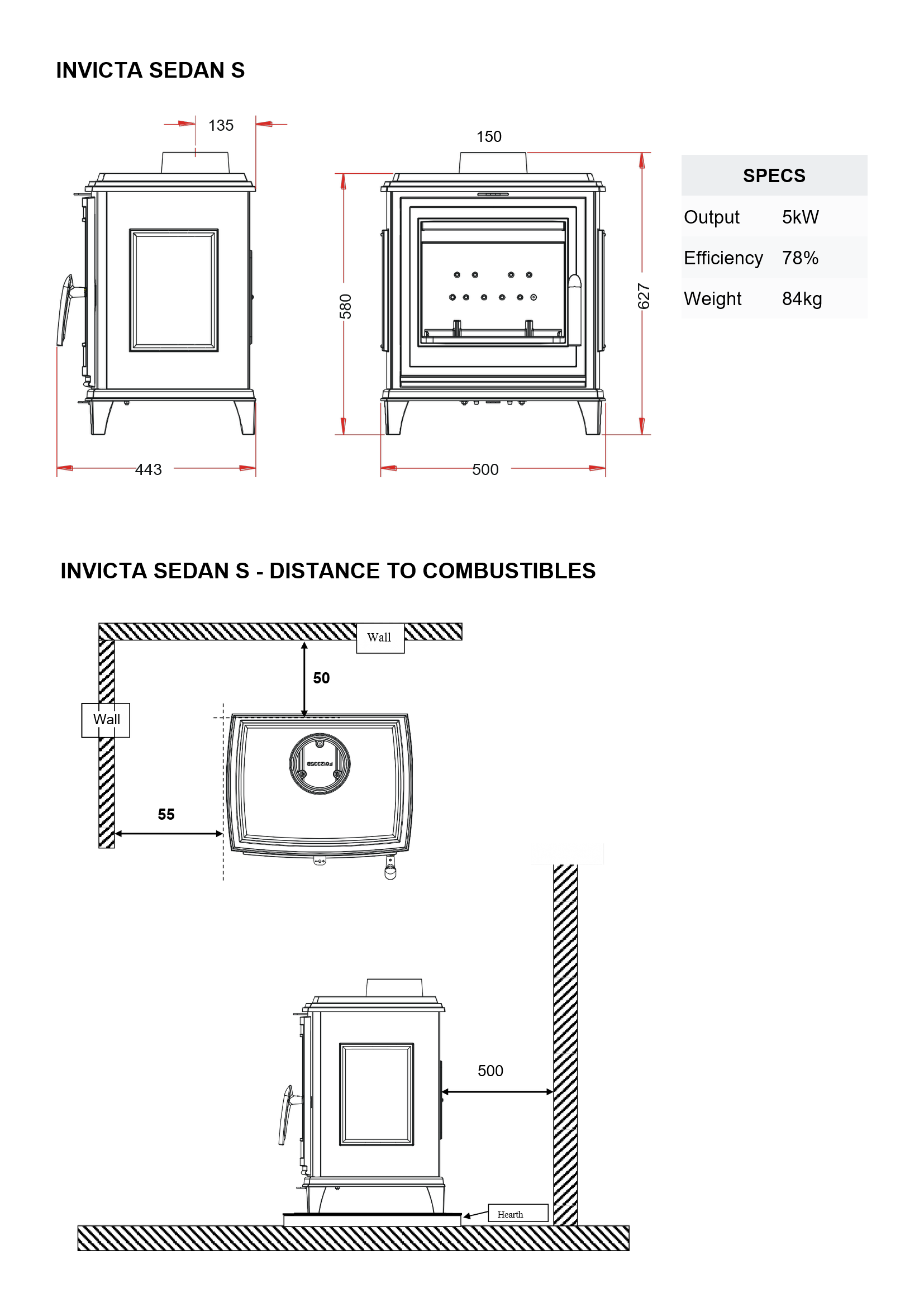 Expertly crafted with cast iron, the Invicta Sedan S combines traditional style with modern functionality. Boasting a 5kW output, this woodburning stove provides efficient heating for any medium sized room. The large glass window offers a captivating view of the flames, adding warmth and ambiance to your space.