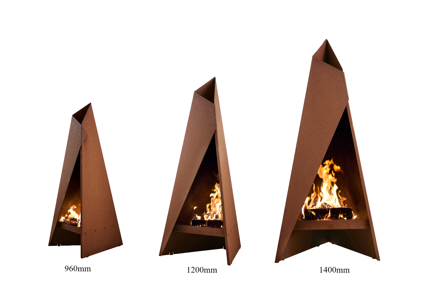 3 different sizes as well as floor plates and a grill for the larger tipi to cook a delicious meal on it.
